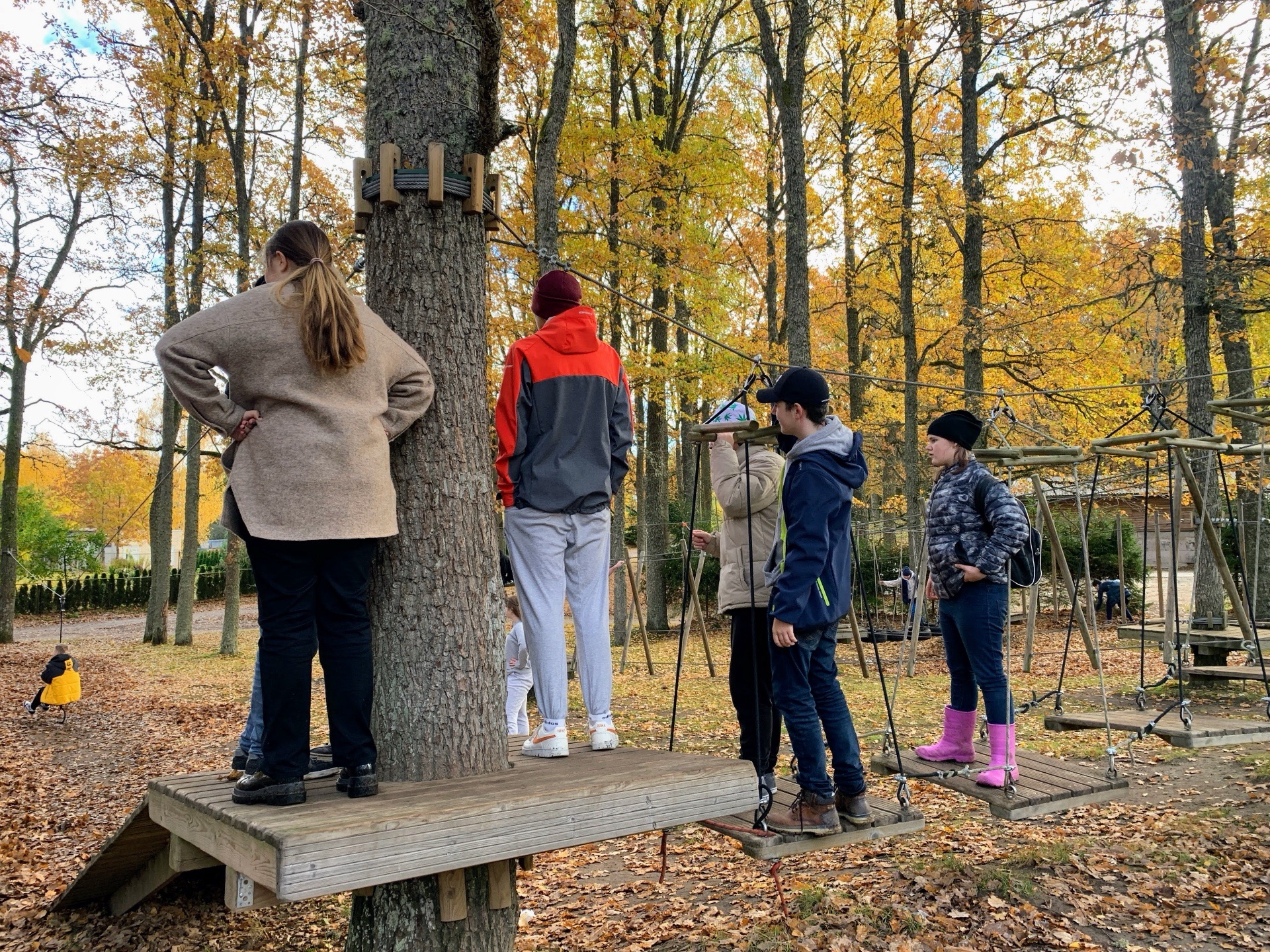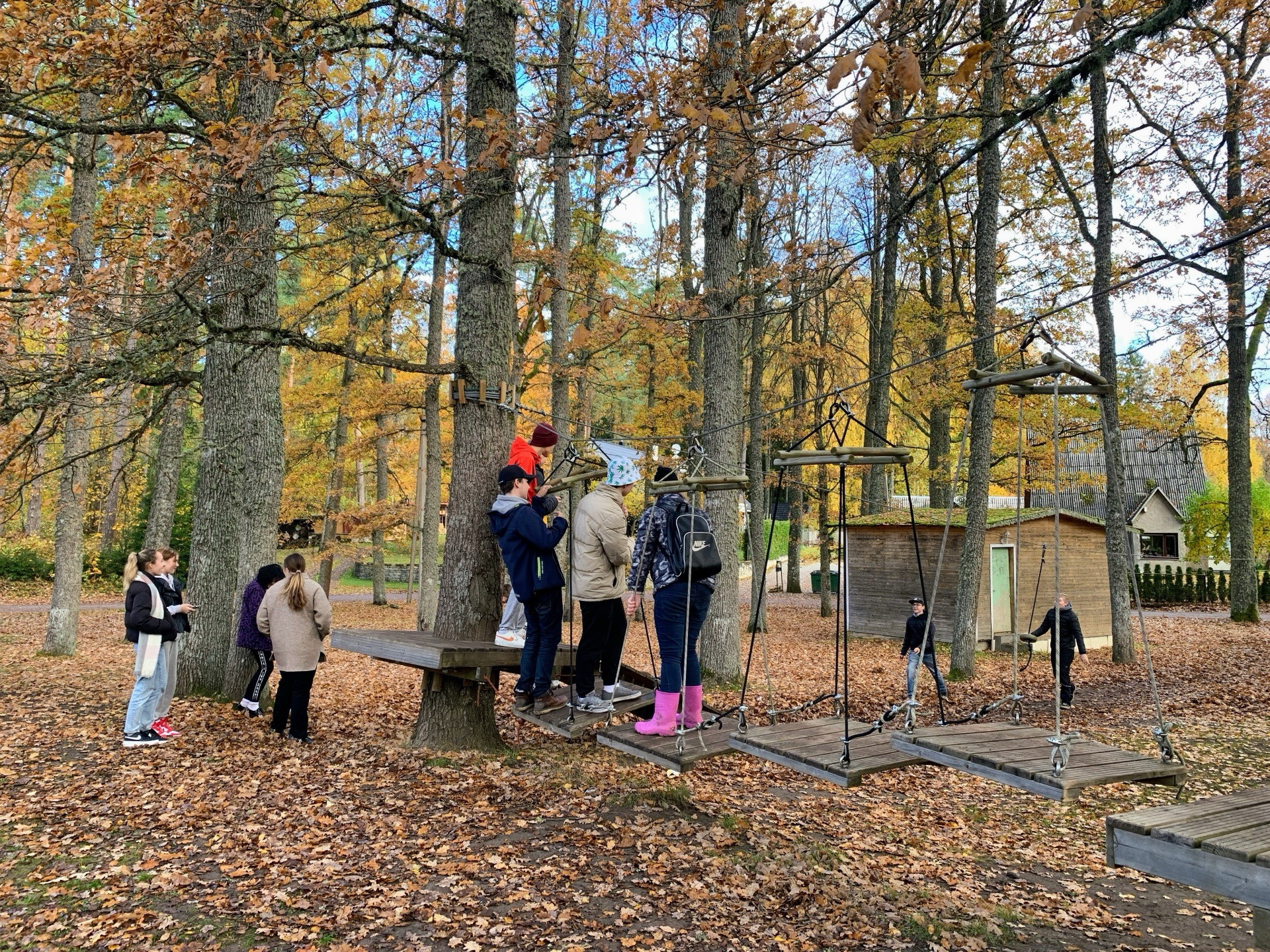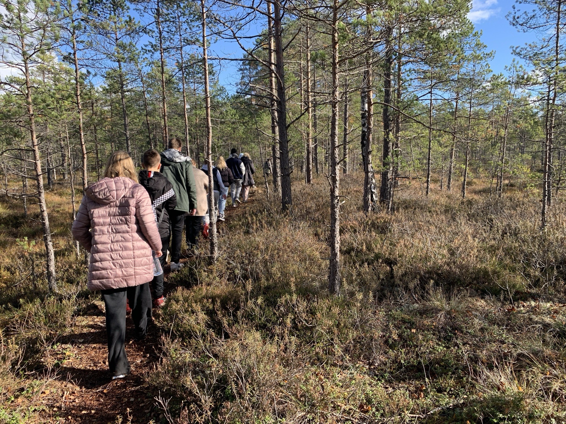 Õppekäigu alguspunktiks oli Nelijärve puhkekeskus. Matka jooksul oli õpilaste ülesandeks leida puulehti, mis töölehtedel kujutatud. Mõnus oli kuldseid lehti täis metsarajal sahistada. Pärast matka oli võimalus einestada ja madalseiklusrajal oma osavust proovida. Reis jätkus RMK Aegviidu külastuskeskusesse, kus räägiti rabade tekkimisest. Lisaks oli palju muudki, mida uudistada. Väike matk rabas ja huvitavad näitused kuurides ning oligi aeg tagasiteele asuda.