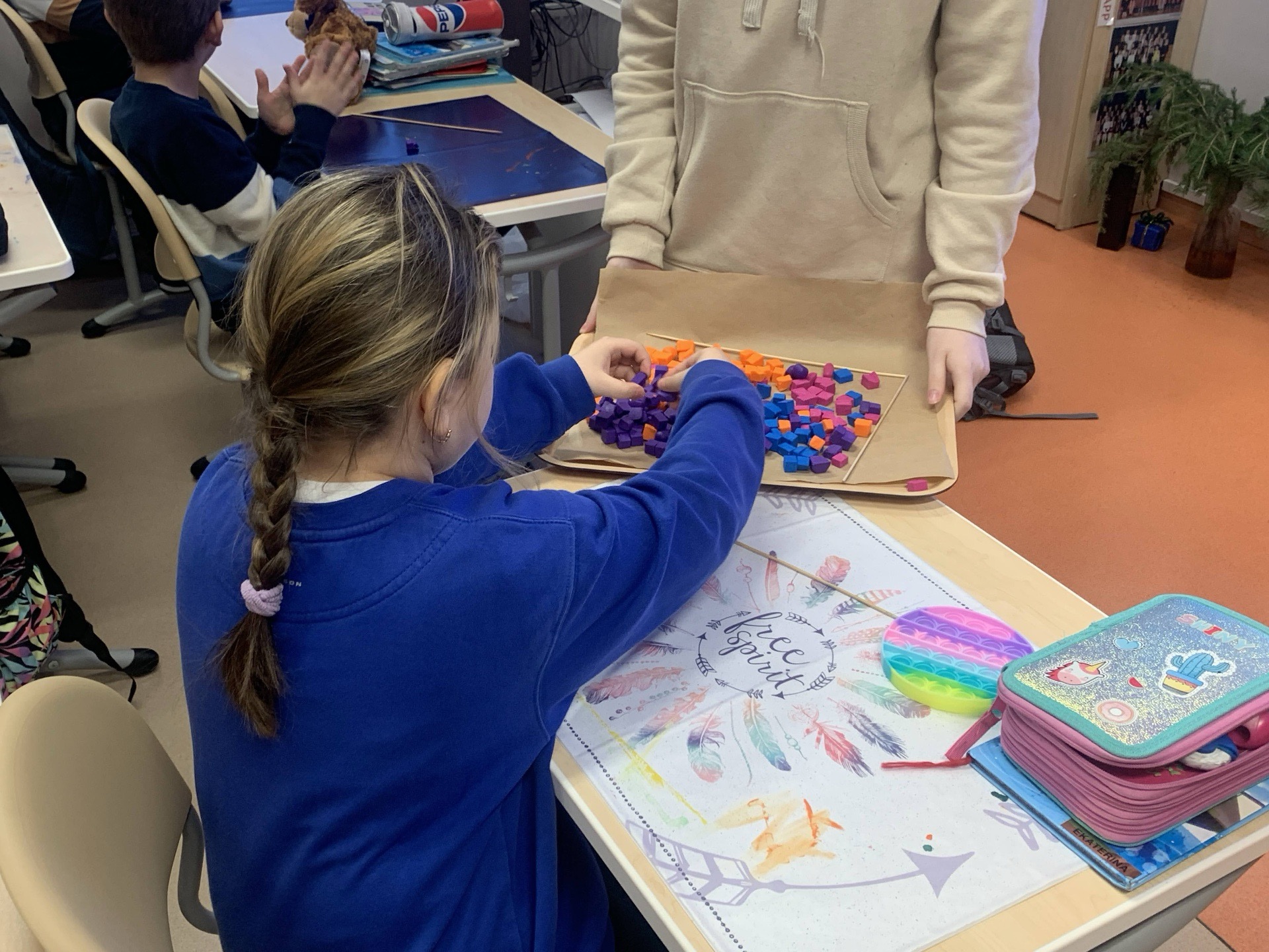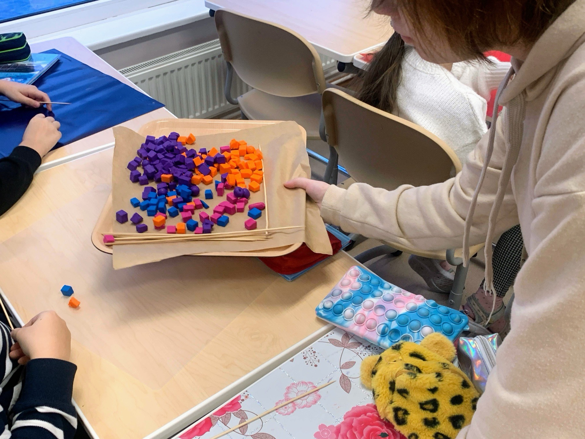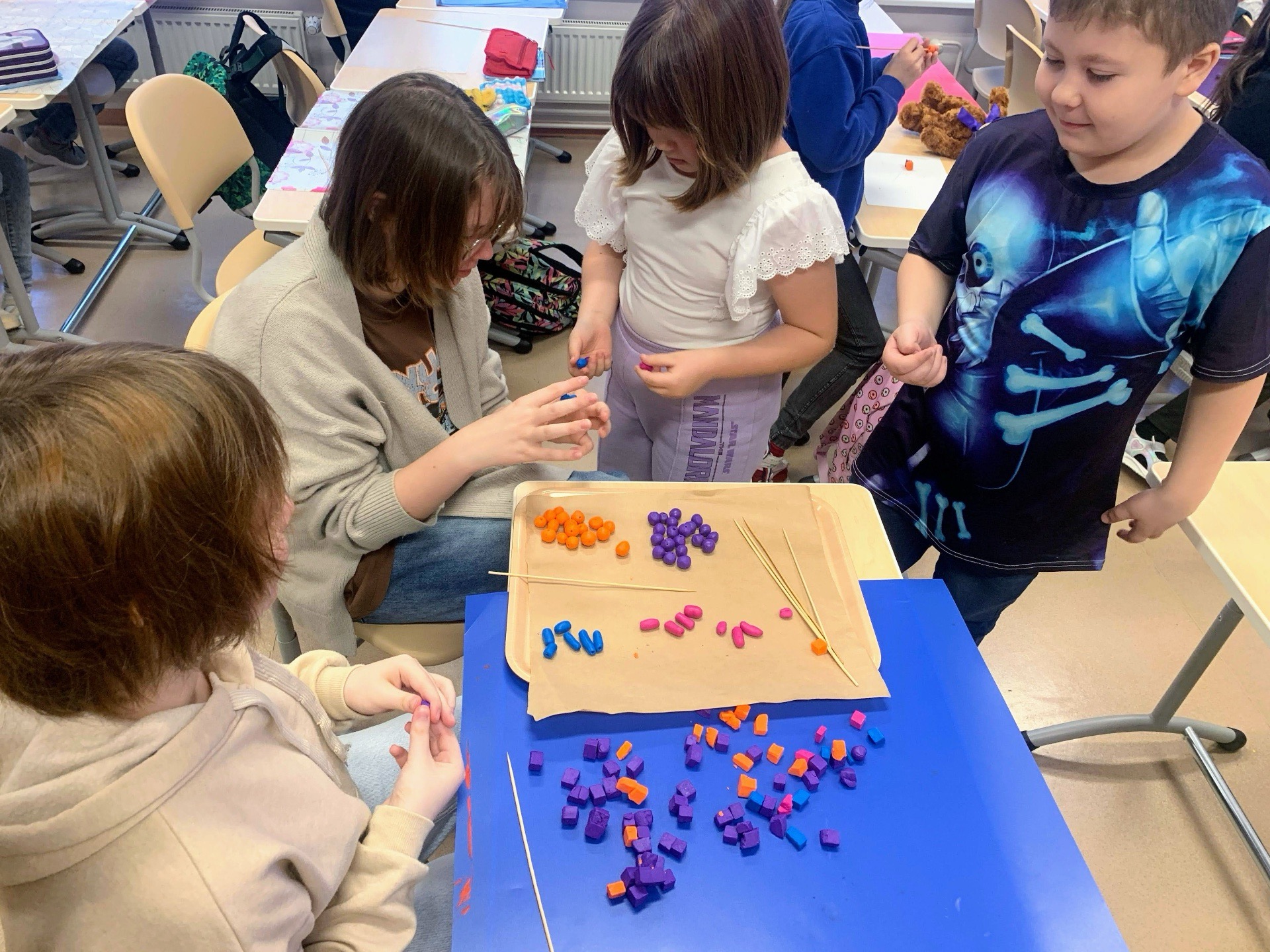 Meie ligi 200 õpilast valmistasid helmeid, et vähendada raskeid haigusi põdevate laste kannatusi. Algklasside õpilased voolisid kõik enda head soovid helmestesse, et haiged lapsed saaksid vapralt haigusi taluda ja saaksid kindlasti haigustest võitu ja terveks.