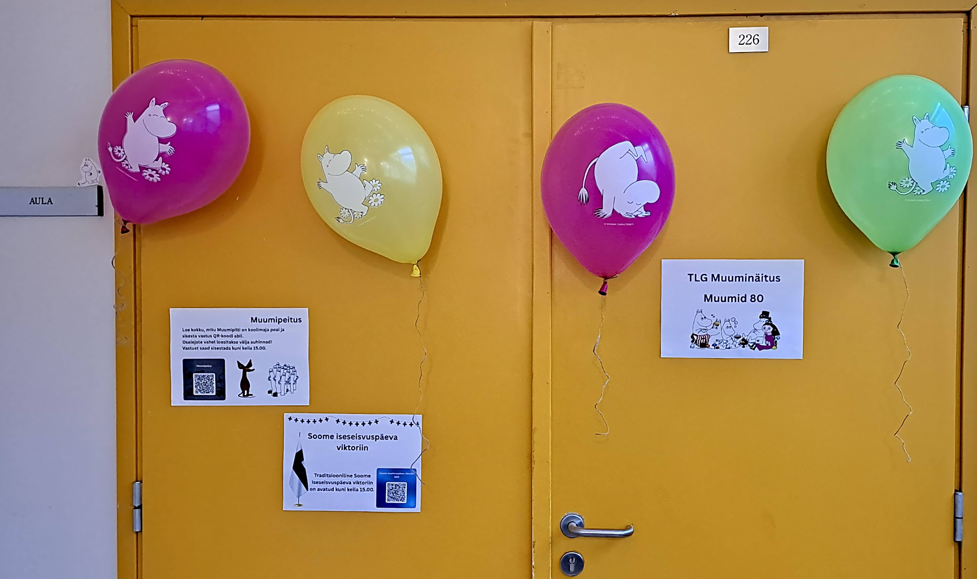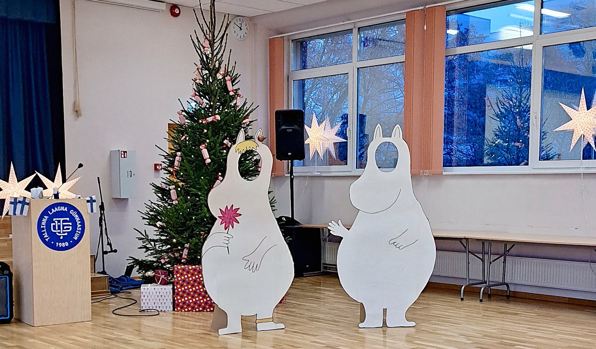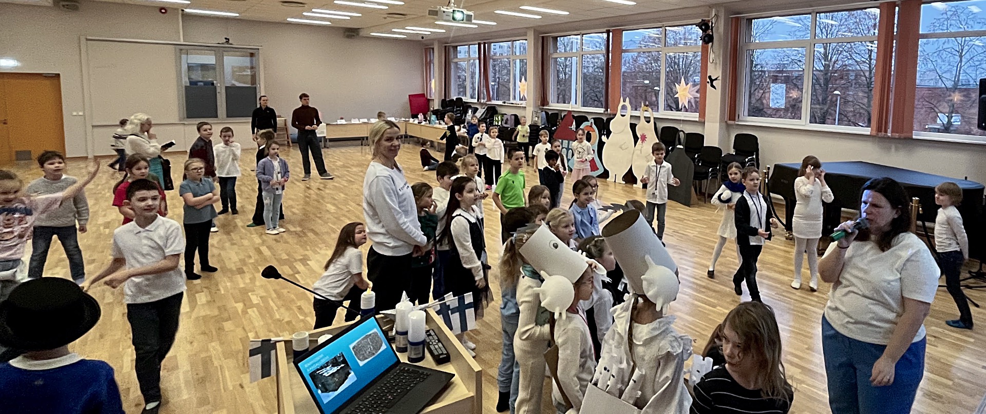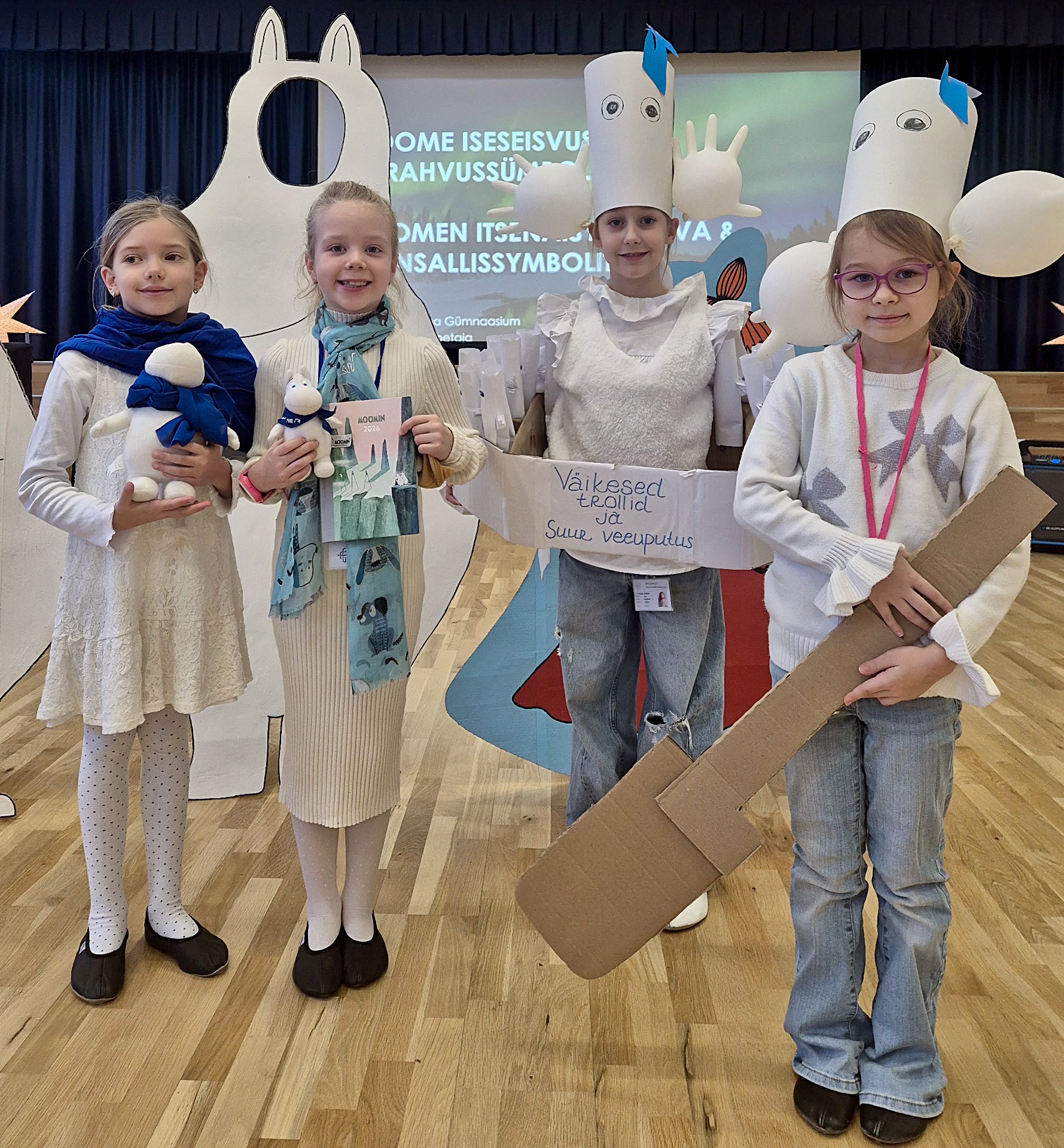 Soome iseisvuspäeva ja Muumide 80. sünnipäeva tähistamise raames valmisid 9.B klassi õpilaste poolt elusuuruses Muumide tegelaskujud. Kõik huvilised said võimaluse kujudega fotosid teha ning jäädvustada pidupäev meeldejäävalt.